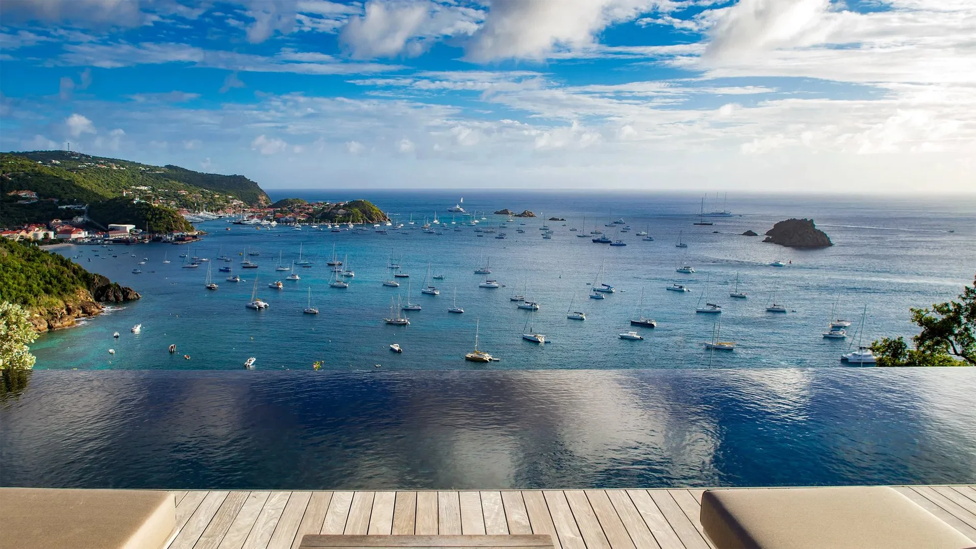 This elegant and luxurious villa primarily focuses its gaze on the vast ocean, nearby beaches, and Gustavia’s iconic harbor, allowing guests to simply melt into the stunning surroundings. Inside, natural stone merges with colorful, Caribbean-hued accent pieces and soothing gray walls for a combination that is as lively as it is serene.